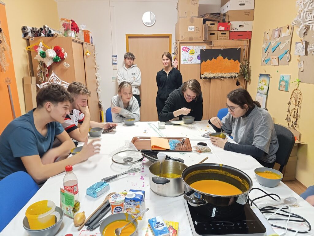 Jako každý rok jsme si se žáky na domově mládeže uvařili podzimní dýňovou polévku. Do příprav a vaření se zapojili všichni zájemci, užili jsme si u toho spoustu zábavy. Vše nám šlo od ruky a výsledek byl výborný. Společně jsme si na polévce pochutnali a u toho plánovali další akce.